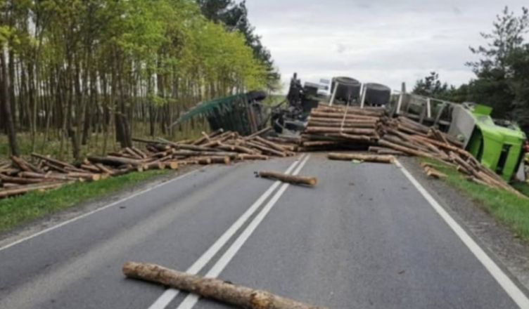 Drogowy horror rozegrał się w piątek, 12 kwietnia w miejscowości Mokre. Tuż za skrzyżowaniem ciężarówka zderzyła się z fordem. Kolos z przyczepą, przewrócił się na bok. Na drogę rozsypały się przewożone kłody drewna. Osobowy ford wpadł do rowu.