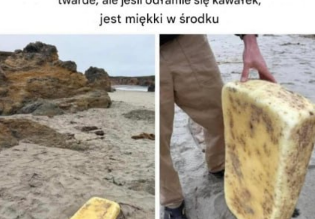 10. Co wyrzuciło na brzeg? To dość ciężka rzecz, twarda, ale jeśli odłamie się kawałek, w środku jest miękka.